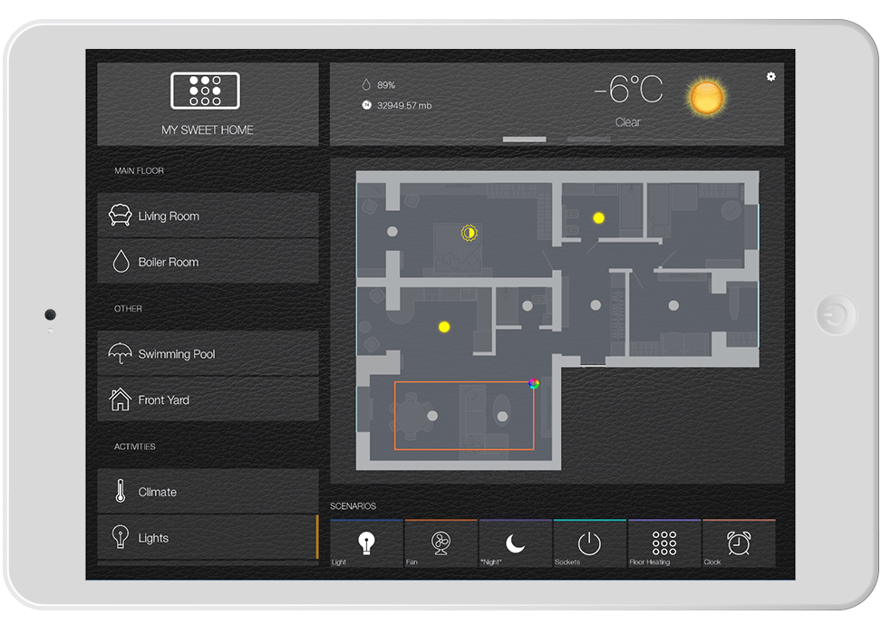 Тут действительно есть, где развернуться, ведь фактически не существует двух одинаковых проектов на iRidium. Это означает, что каждый проект будет индивидуальным, а значит максимально комфортным для пользователя. Кроме этого, такой подход позволять создавать проекты согласно предпочтениям пользователя и даже отражать особенности дизайна помещения в интерфейсе приложения.