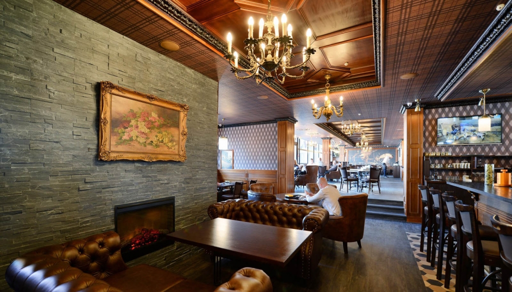 В барах и ресторанах традиционно большое количество групп света, поэтому управление освещением стало основным желанием заказчика. Потолочные и настенные светильники, подсветка бара — все контролируется с помощью планшета. Также в нескольких местах установлены панели управления для быстрого доступа. Цвет панелей перекликается с классическим дизайном бара в английском стиле.